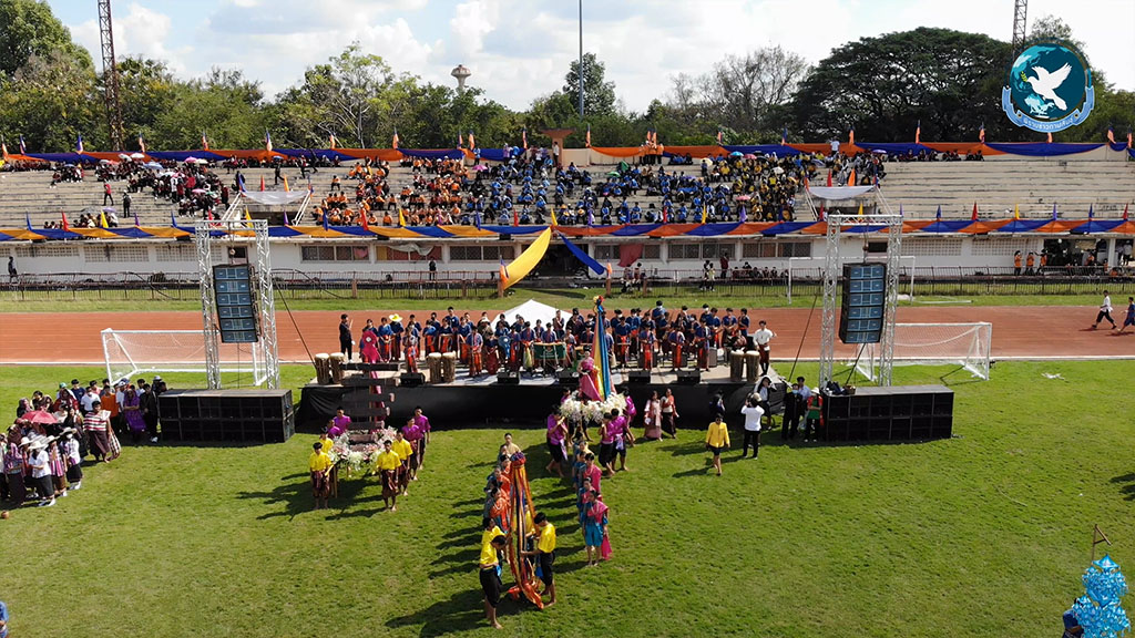 เปิดอย่างยิ่งใหญ่สมชื่อจังหวัดกาฬสินธุ์ “หลวงพ่อองค์ดำลือเลื่อง เมืองฟ้าแดดสงยาง โปงลางเลิศล้ำ วัฒนธรรมผู้ไทย ผ้าไหมแพรวา ผาเสวยภูพาน มหาธารลำปาว ไดโนเสาร์สัตว์โลกล้านปี” นี่เป็นคำขวัญของจังหวัดกาฬสินธุ์ ที่ทุกภาคส่วนได้ร่วมกันจัดพิธีเปิดต้อนรับ น.ส.ตรีนุช เทียนทอง รัฐมนตรีว่าการกระทรวงศึกษาธิการ ณ สนามกีฬากลางจังหวัดกาฬสินธุ์ มีการแสดงโปงลางอลังการงานสร้าง ชื่อชุด “กาฬสินธุ์ถิ่นอารยธรรม เลิศล้ำวัฒนธรรมผู้ไท” จากโรงเรียนกาฬสินธุ์พิทยาสรรพ์ ใช้นักแสดงกว่า 600 ชีวิต และได้รับความร่วมมือจากสถานศึกษาในพื้นที่จังหวัดกาฬสินธุ์ ขึ้นอัฒจรรย์เชียร์จากโรงเรียนอนุกูลนารี โรงเรียนเมืองกาฬสินธุ์ วิทยาลัยเทคนิคกาฬสินธุ์ วิทยาลัยการอาชีพกาฬสินธุ์ วิทยาลัยการอาชีพคำม่วง โรงเรียนเซนยอแซฟกาฬสินธุ์ รวมจำนวนกว่า 1,000 คน ถือเป็นงานใหญ่ที่สุดปีนี้ในจังหวัดกาฬสินธุ์ ถือเป็นการสร้างประวัติศาสตร์หน้าใหม่ของจังหวัดกาฬสินธุ์ไปด้วย