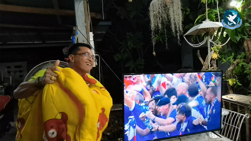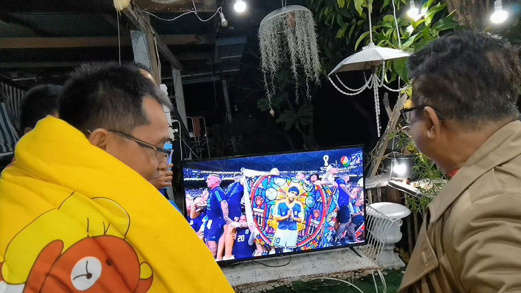 เมื่อช่วงค่ำของวันอาทิตย์ที่ผ่านมา (18 ธ.ค. 65 เวลา 21.45 น.) แฟนบอลชาวจังหวัดกาฬสินธุ์ไม่กลัวอากาศหนาวเย็น ที่มีอุณภูมิอยู่ประมาณ 19 องศา ได้รวมกลุ่มกันเชียร์ฟุตบอลโลก เชียร์ทีมรัก ระหว่างแฟนบอลทีมอาร์เจนตินา และแฟนบอลทีมฝรั่งเศส ย้ายทีวีจอใหญ่ออกมาลานหลังบ้าน พร้อมกับทำเมนูยอดฮิตในช่วงหน้าหนาวคือ “ข้าวจี่” โดยการตั้งเตาถ่านติดไฟร้อนๆ ตีไข่ไก่ให้แตกเป็นฟอง จุ่มข้าวเหนียวที่จี่ร้อนๆ ให้กรอบนอกนุ่มใน พร้อมเมนูปิ้งย่างอีสานยอดฮิต “ย่างพวงนมวัว” แบ่งกันทานอย่างเอร็ดอร่อย พร้อมกับการเชียร์บอลไปด้วย ซึ่งผลบอลทีมรักจะแพ้หรือชนะไม่ใช่สิ่งสำคัญ เพราะกลุ่มเพื่อนได้รวมกลุ่มกันถือเป็นการเชื่อมสัมพันธ์และสร้างมิตรภาพอันดีงามให้ยาวนานตลอดการสำคัญกว่า