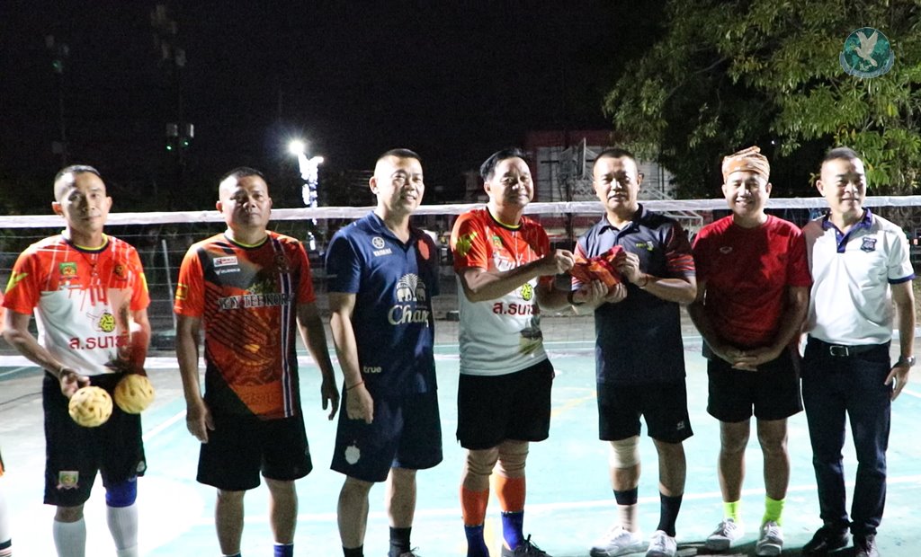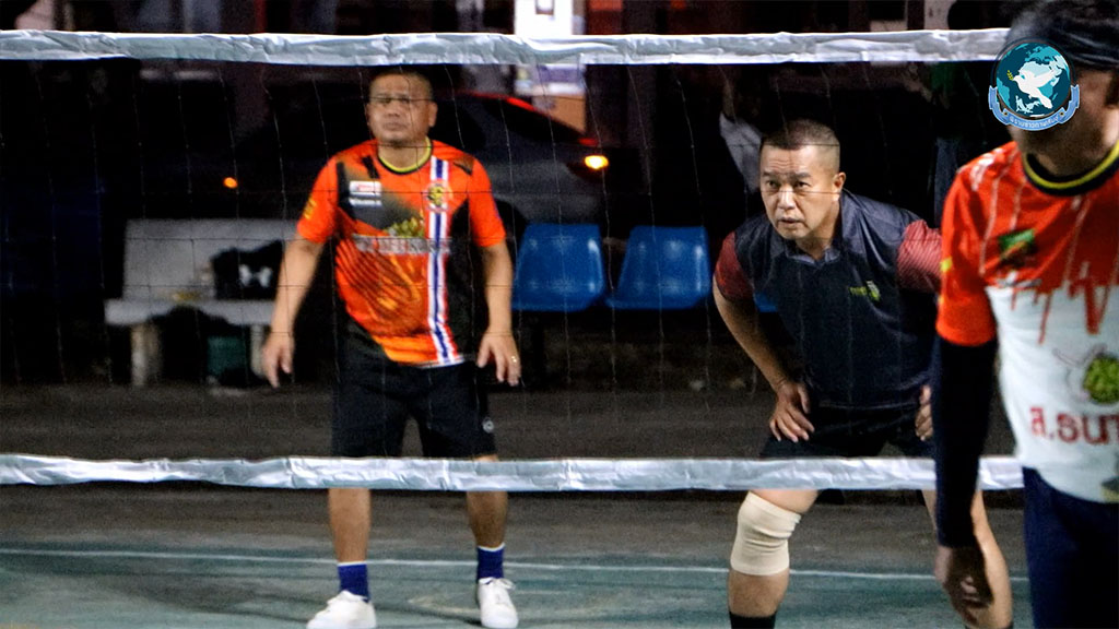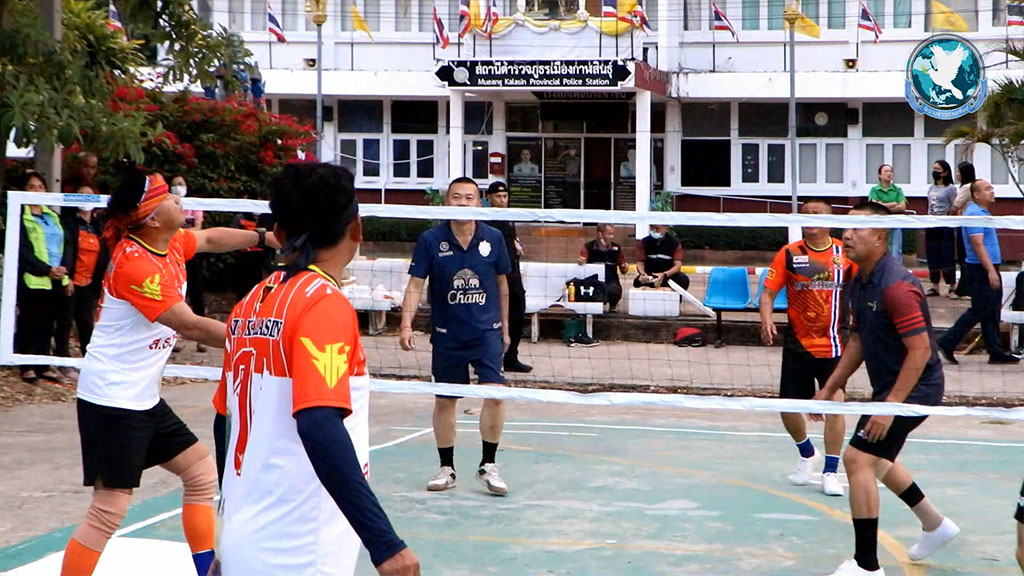 แล้ววันนี้ (6 ม.ค. 66) เป็นการแข่งขันตะกร้อคู่พิเศษ ระหว่าทีม กาฬสินธุ์ 1 (ทีมเสื้อสีส้ม) นำโดยท่านศุภศิษย์ กอเจริญยศ ผู้ว่าราชการจังหวัดกาฬสินธุ์ (เสื้อเบอร์ 10) พบทีม ฮันเตอร์ 44 ที่นำโดย พล.ต.ต.วรวัฒน์ มะลิ รอง ผบช.ภ.6 (เสื้อสีเทาแขนเสื้อสีแดง ใส่ผ้าก็อตเข่าขวา) ทำการแข่งขัน 5 เซท