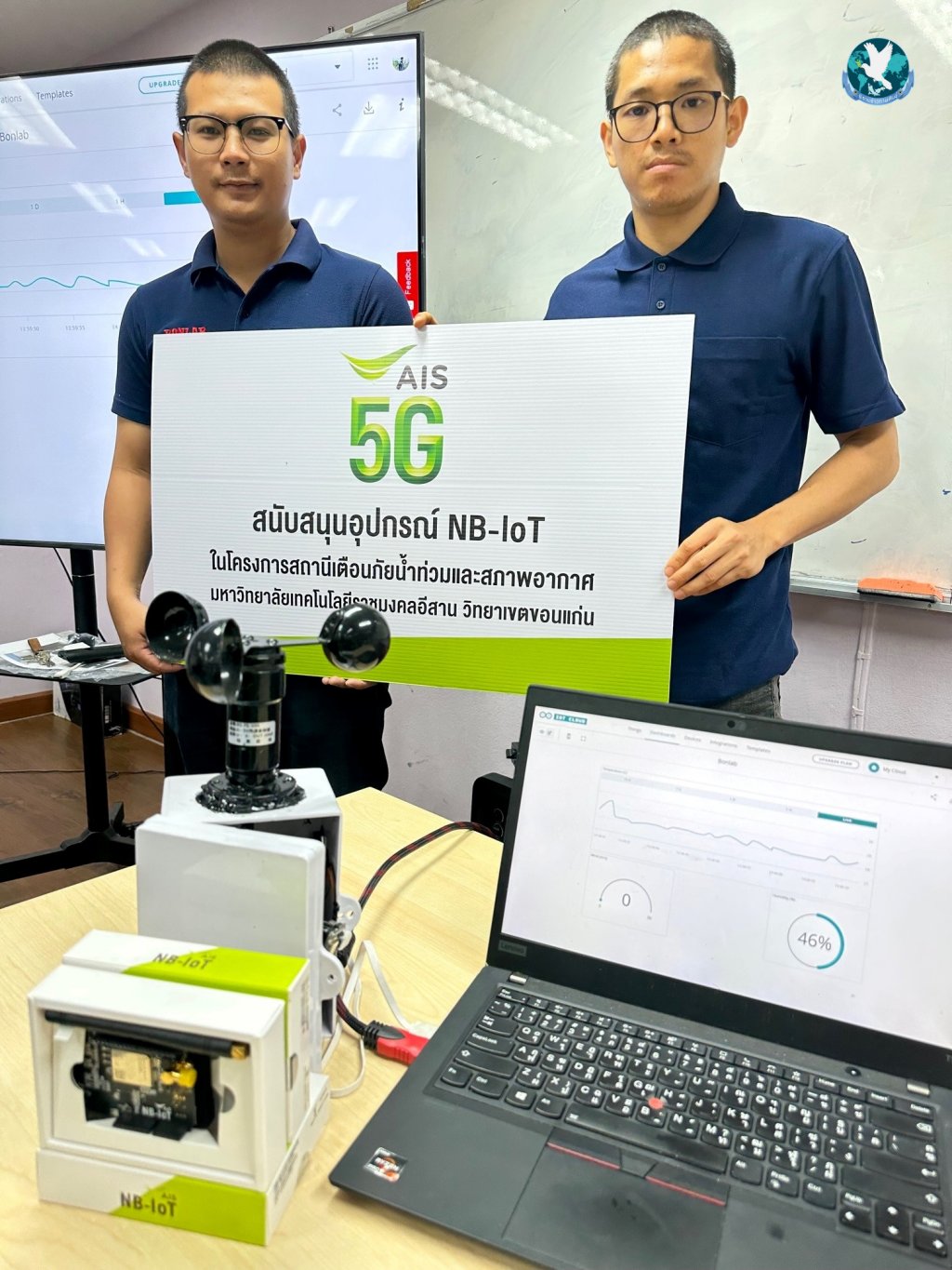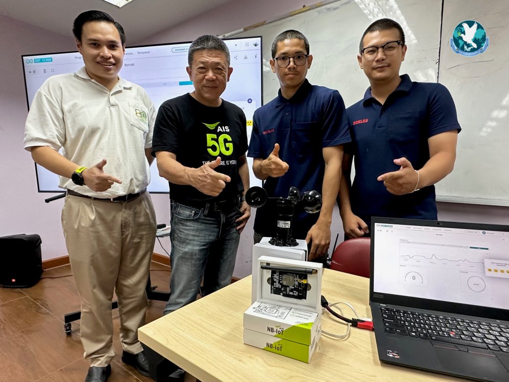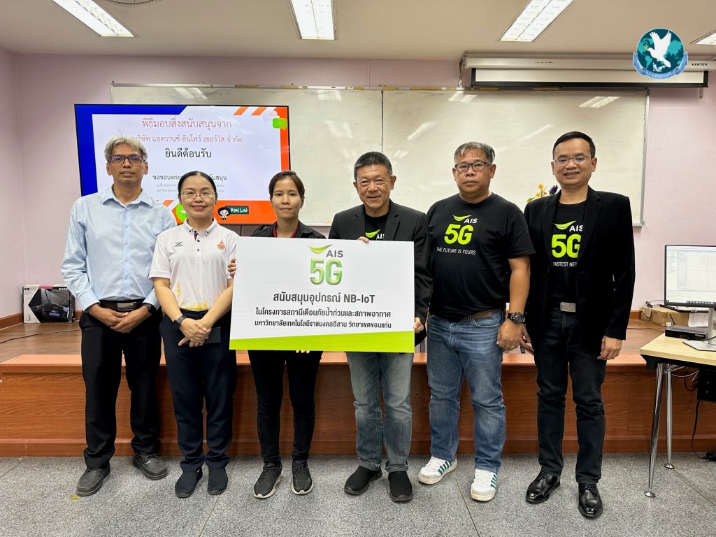 ล่าสุด AIS โดย นายมหัณณพ อภินันทนพงศ์ หัวหน้างานปฏิบัติการภูมิภาค-ภาคตะวันออกเฉียงเหนือ AIS นำทีมผู้บริหารและพนักงาน มอบอุปกรณ์ NB-IoT ให้ สาขาวิศวกรรมอิเล็กทรอนิกส์ และโทรคมนาคม คณะวิศวกรรมศาสตร์ มหาวิทยาลัยเทคโนโลยีราชมงคลอีสาน วิทยาเขตขอนแก่น โดย ดร.ปฐมาภรณ์ ชัยกูล รองคณบดีฝ่ายแผนและประกันคุณภาพการศึกษา มหาวิทยาลัยเทคโนโลยีราชมงคลอีสาน วิทยาเขตขอนแก่น เป็นผู้แทนรับมอบ เพื่อให้นำไปใช้ในโครงการ “สถานนีเตือนภัยน้ำท่วมและสภาพอากาศ” ที่จะนำอุปกรณ์ NB-IoT ไปส่งข้อมูลผ่านเครือข่าย AIS NB-IoT พร้อมทั้งคำนวณค่า AI และระบบประมวลผลผ่านเซ็นเซอร์ สามารถนำข้อมูลไปวิเคราะห์ เพิ่มประสิทธิภาพในการจัดการและคำนวณปริมาณน้ำฝน เพื่อใช้ในการเตือนภัยน้ำท่วมและสภาพอากาศได้อย่างถูกต้องแม่นยำ ซึ่งจะเกิดประโยชน์ในด้านของภาคการศึกษาและประเทศต่อไป