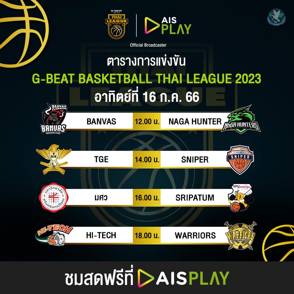 AIS PLAY ยังคงตอกย้ำความเป็นศูนย์กลางด้านคอนเทนต์กีฬาชั้นนำทั้งในประเทศและระดับโลก ล่าสุดได้ผสานความร่วมมือกับ สมาคมกีฬาบาสเกตบอลแห่งประเทศไทยเดินหน้าถ่ายทอดสดการแข่งขัน Basketball Thai League2023 หรือบาสเกตบอลไทยลีก บาสเกตบอลอาชีพสูงสุดของไทย ให้แฟนบาสเกตบอลชาวไทยได้รับชมฟรีทุกเครือข่าย แบบจัดเต็มทุกแมตช์ทั้งชมสดและรีรัน ผ่าน AIS PLAY ในทุกช่องทาง ประเดิมการแข่งขันนัดแรก 15 กรกฎาคม เวลา 12.00 น. เป็นต้นไป