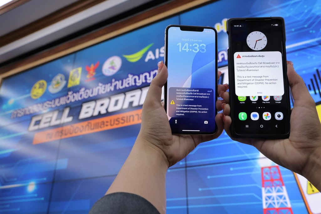 AIS สนับสนุนภารกิจเตือนภัยฉุกเฉินของประเทศ เดินหน้าผนึกกรมป้องกันและบรรเทาสาธารณภัย (ปภ.) ในการยกระดับการแจ้งเตือนภัยผ่านระบบ Cell Broadcast (CBS) โดยร่วมมือกับหน่วยงานภาครัฐ อาทิ กระทรวงดิจิทัลเพื่อเศรษฐกิจและสังคม สำนักงาน กสทช. และกรมประชาสัมพันธ์ เตรียมส่งข้อความทดสอบผ่านระบบแจ้งเตือนภัยผ่านโทรศัพท์เคลื่อนที่ หรือ Cell Broadcast ที่จะสามารถส่งข้อมูลสำคัญไปยังโทรศัพท์มือถือของประชาชนได้โดยตรง รวดเร็ว และครอบคลุมพื้นที่เสี่ยงภัยทั่วประเทศ