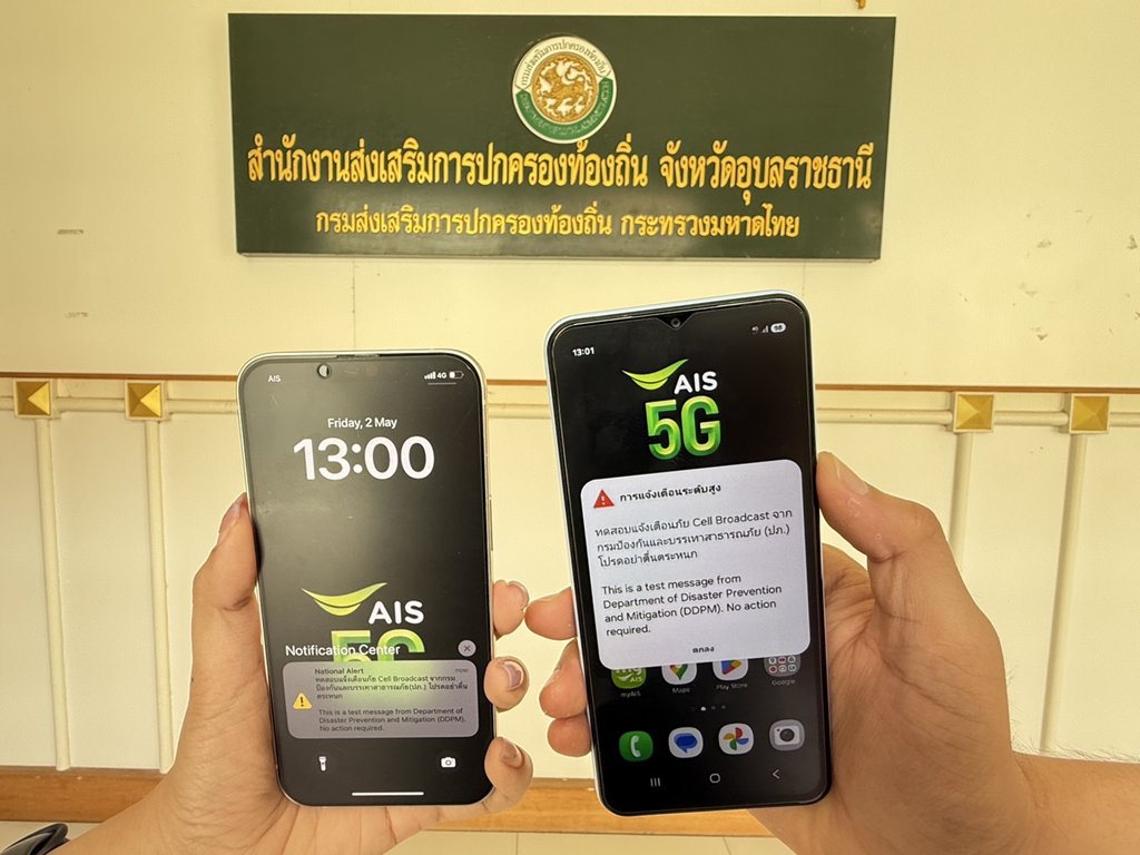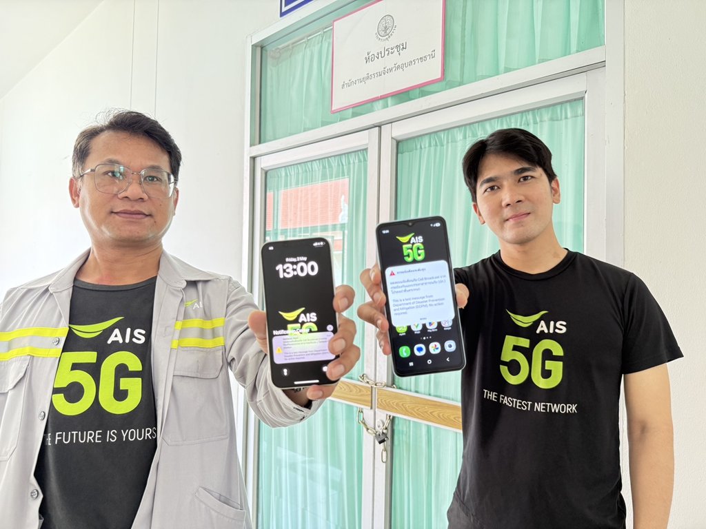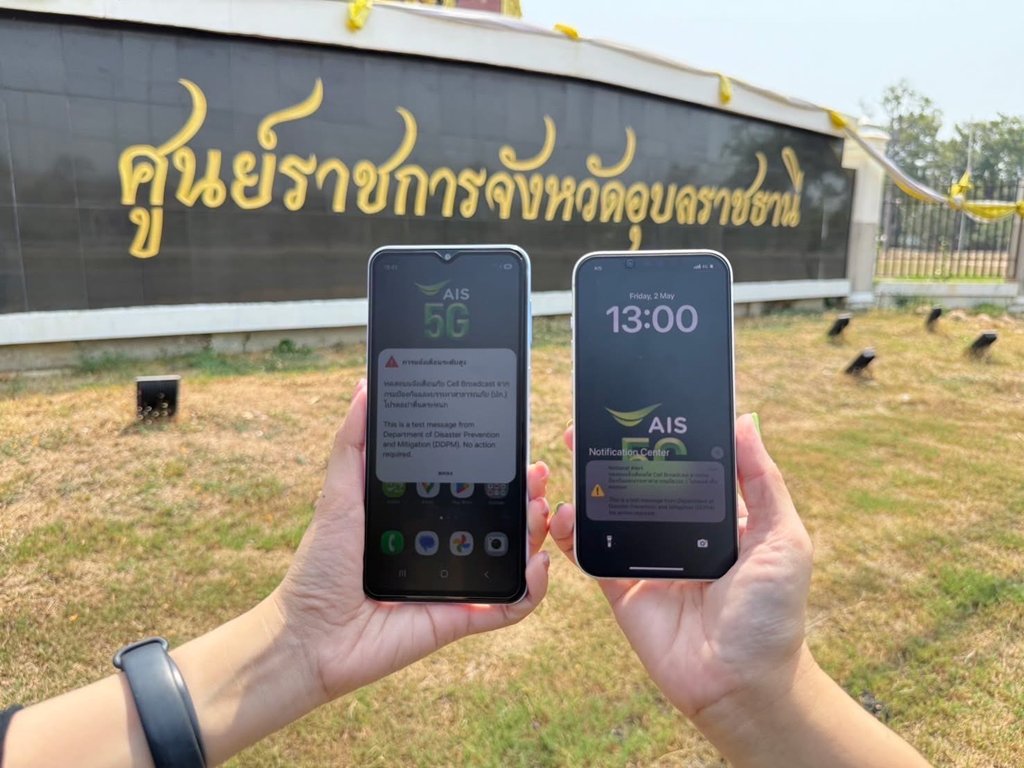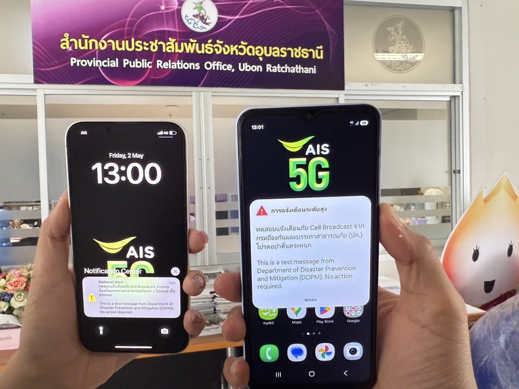 AIS ร่วมกับ กรมป้องกันและบรรเทาสาธารณภัย (ปภ.) จัดทดสอบแจ้งเตือนภัยฉุกเฉินผ่านระบบ Cell Broadcast ครั้งที่ 1 ในระดับเล็ก โดยดำเนินการภายในอาคารราชการ 5 แห่ง ได้แก่ ศาลากลางจังหวัดเชียงราย, อุบลราชธานี, สุพรรณบุรี, สงขลา และอาคารศูนย์ราชการเฉลิมพระเกียรติฯ กรุงเทพมหานคร ซึ่งผลการทดสอบบรรลุเป้าหมายอย่างมีประสิทธิภาพ ตอกย้ำความพร้อมของระบบในการรองรับการแจ้งเตือนภัยฉุกเฉินอย่างแม่นยำและรวดเร็ว