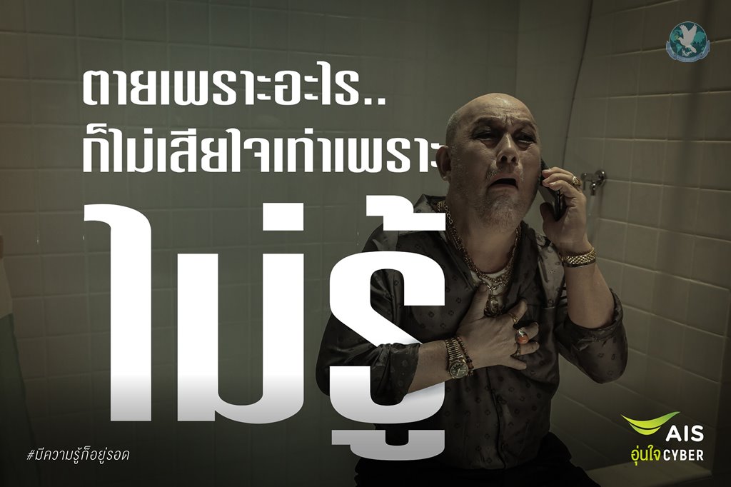 AIS เปิดตัวแคมเปญสื่อสาร พร้อมหนังโฆษณาชุดใหม่ล่าสุดภายใต้แนวคิด “มีความรู้ก็อยู่รอด” ตอกย้ำภารกิจเพื่อนคู่คิดดิจิทัล เพื่อคนไทยทุกเจนเนอเรชัน ในฐานะผู้ให้บริการดิจิทัลอันดับ 1 ของไทยที่พร้อมเป็นกลไกช่วยผลักดันและส่งเสริมการเติบโตเศรษฐกิจควบคู่ไปกับการยกระดับสังคมการใช้งานดิจิทัลให้มีความปลอดภัยและสร้างสรรค์ โดยมุ่งชี้ให้เห็นถึงความสำคัญของปัญหาจากภัยไซเบอร์ทุกรูปแบบ ที่วันนี้กำลังกลายเป็นปัญหาคอขาดบาดตาย ซึ่งสามารถเกิดขึ้นได้กับทุกคน ทุกเพศ ทุกวัย และสิ่งเดียวที่จะทำให้เราเอาชนะภัยไซเบอร์ได้ก็คือ “ความรู้” ซึ่งวันนี้สามารถเรียนรู้ได้ด้วยตัวเองกับหลักสูตรอุ่นใจไซเบอร์ จากการเดินหน้าทำงานร่วมกับทุกภาคส่วนทั้งกรมสุขภาพจิต กระทรวงสาธารณสุขในมิติของการร่วมสร้างสุขภาวะดิจิทัลที่ดี รวมถึงกองบัญชาการตำรวจสืบสวนสอบสวนอาชญากรรมทางเทคโนโลยีหรือ ตำรวจไซเบอร์ ในมิติการดำเนินการทางกฎหมายกับกลุ่มมิจฉาชีพ ทั้งหมดเพื่อขับเคลื่อนสังคมสู่การเป็นพลเมืองดิจิทัลที่สมบูรณ์แบบ