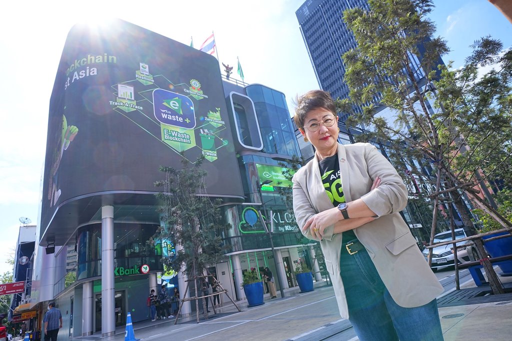 ล่าสุดได้นำศักยภาพโครงข่ายอัจฉริยะ กับเทคโนโลยีบล็อกเชน (Blockchain) มา Redesign Ecosystem หรือพัฒนากระบวนการจัดการขยะอิเล็กทรอนิกส์ตั้งแต่ผู้ทิ้งจนถึงโรงงานรีไซเคิล เพื่อให้ทุกคนสามารถจัดการขยะ E-Waste ได้ง่ายขึ้น เห็นผลลัพธ์ในการลดการปล่อยก๊าซเรือนกระจก บนแพลตฟอร์ม E-Waste+ ที่เกิดขึ้นเป็นครั้งแรกในเอเชียตะวันออกเฉียงใต้ โดยแพลตฟอร์มนี้จะเริ่มใช้งานจริงกับ 6 องค์กรนำร่อง เพื่อร่วมกันแก้ไขปัญหาขยะอิเล็กทรอนิกส์อย่างยั่งยืน และยังทำงานร่วมกับองค์การบริหารจัดการก๊าซเรือนกระจก (องค์การมหาชน) ที่เข้ามาสนับสนุนแนวทางการคำนวณปริมาณการปล่อยก๊าซเรือนกระจกที่ได้จากการรีไซเคิล E-Waste อย่างถูกต้องตามมาตรฐานสากล