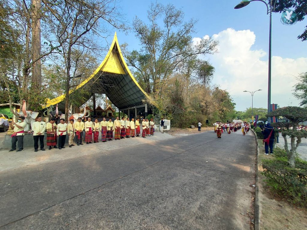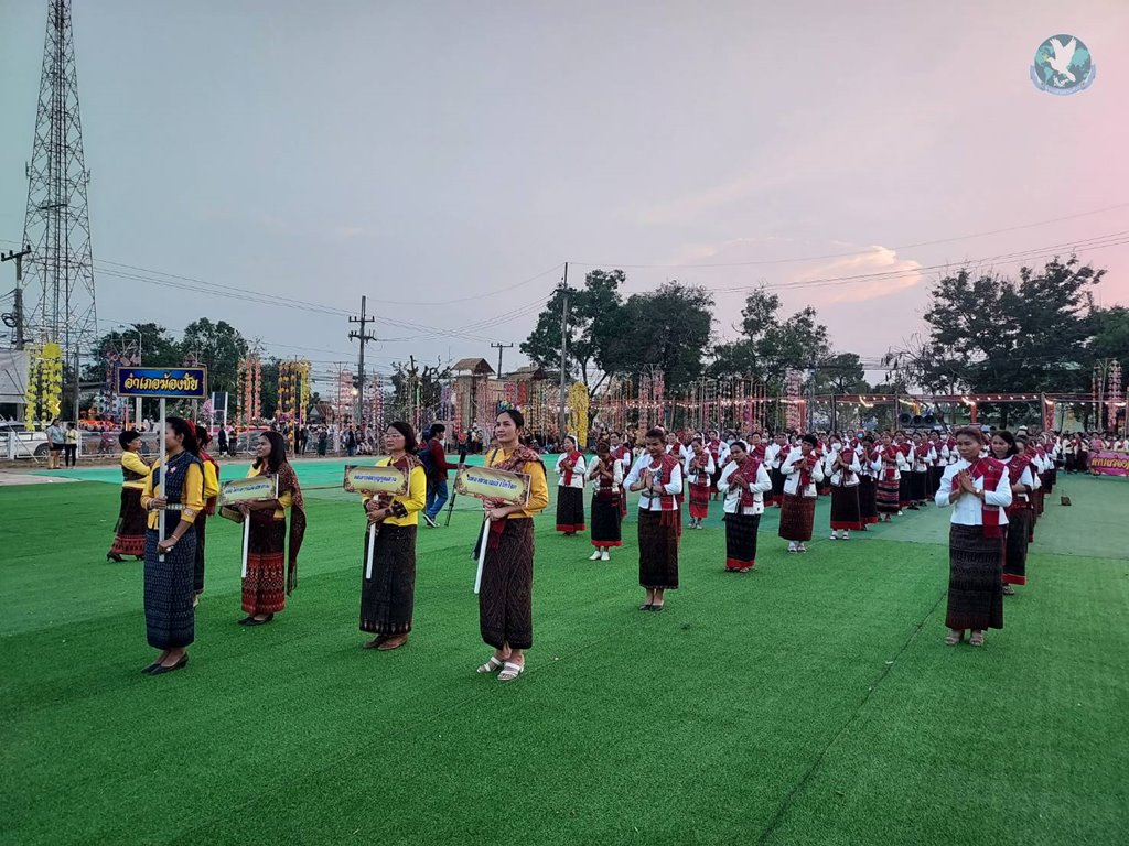 นายพุทธภูมิ นาชัยเริ่ม นายอำเภอร่องคำ กล่าวต้อนรับว่า วันนี้ได้มีกิจกรรมที่สำคัญ ประกอบด้วย พิธีบวงสรวงเจ้าปู่กุดลิงและรำบวงสรวงเจ้าปู่กุดลิง ณ บริเวณศาลเจ้าปู่กุดลิง มีขบวนแห่รถบุปผชาติ (ดอกโน) จำนวน 8 ขบวน และยังมีพิธีอันเชิญถ้วยรางวัลพระราชทานพระบาทสมเด็จพระปรเมนทรรามาธิบดีศรีสินทรมหาวชิราลงกรณ พระวชิรเกล้าเจ้าอยู่หัว ถ้วยรางวัลพระราชทานสมเด็จพระนางเจ้าสุทิดาพัชรสุธาพิมลลักษณ พระบรมราชินี และถ้วยรางวัลพระราชทานสมเด็จพระกนิษฐาธิราชเจ้า กรมสมเด็จพระเทพรัตนราชสุดาฯสยามบรมราชกุมารีอย่างยิ่งใหญ่สมพระเกียรติ ไป ณ เวทีกลาง มีการแสดง “ลำเพลินเชิญเที่ยวร่องคำ” นางรำ 1,000 คน และการแสดงชุด “ไหว้อ้อ ยอครูกลอง” พิธีเปิด ชุด “กลองผสานศิลป์” การออกร้านมัจฉากาชาด (ตักลาภ) พร้อมทั้งการแสดงและจำหน่ายสินค้า OTOP จากทั้ง 18 อำเภอ ซึ่งกำหนดจัดทุกวันของการจัดงาน