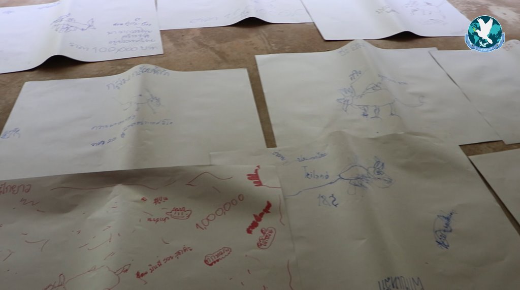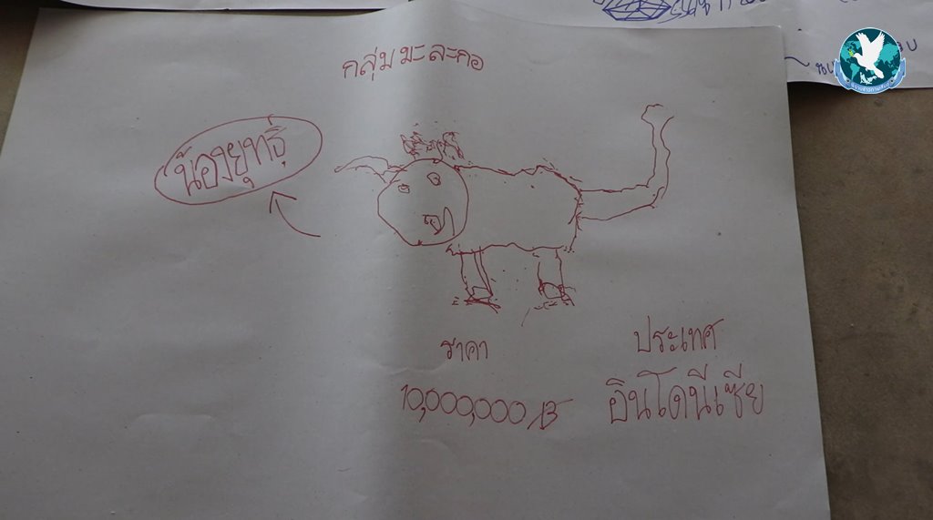 สัตว์ที่เด็กๆ ต่อไว้มีทั้ง ปลา, นก, เต่า ส่วนที่เห็นต่อเป็นตัวยาวๆ ก็คือ งู (เด็กทำท่าดีใจแบบสะใจมาก)