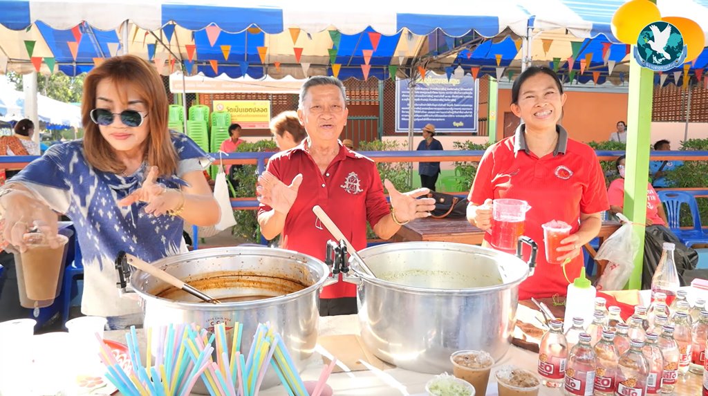 สีสันของขบวนแห่กองกฐินสามัคคี แดดจะร้อนอบอ้าวขนาดไหน สายบุญก็ไม่หวั่น ทั้งเต้นทั้งฟ้อนรำตามจังหวะดนตรีอย่างสนุกสนานจนลืมความร้อน และปีนี้สภาพอากาศร้อนจัด ทางวัดก็เลยเปลี่ยนเส้นทาง เพื่อลดระยะทางให้พุทธศาสนิกชนไม่ต้องเหนื่อยมาก เจ้าของโรงทานที่เป็นน้ำดื่มน้ำหวาน ก็เลยต้องเคลื่อนย้ายโต๊ะแจกน้ำดื่มอย่างกะทันหัน ก็ยังโชคดีที่ได้พี่ๆ อปพร. (อาสาสมัครป้องกันพลเรือน) ช่วยย้ายโต๊ะ มาตั้งบริการให้ผู้ร่วมขบวนกองกฐินสามัคคีทันพอดี ทำให้ทุกคนได้ดื่มน้ำหวานเย็นชื่นใจคลายร้อน จนหายเหนื่อย มีแรงเข้าไปต่อจนถึงข้างในวัดเลยทีเดียว