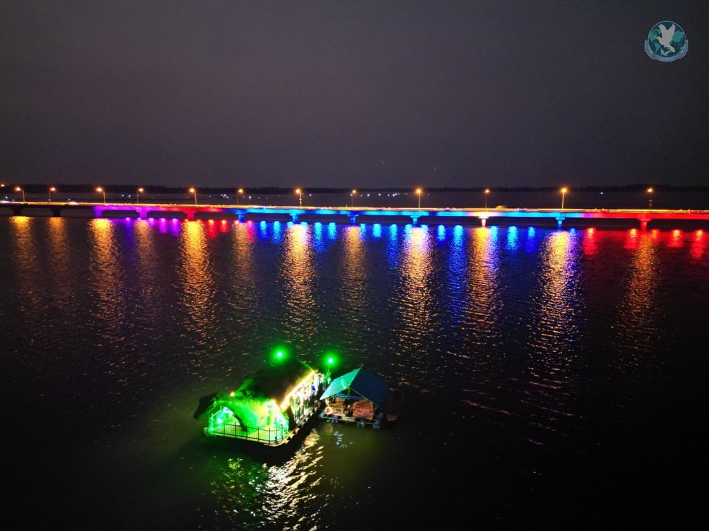 กาฬสินธุ์ บรรยากาศหลังชมพระอาทิตย์ตกดินที่เขื่อนลำปาว บริเวณสะพานเทพสุดา อ.สหัสขันธ์ จ.กาฬสินธุ์ นักท่องเที่ยวส่วนใหญ่จะยังไม่รีบกลับบ้าน เพราะรอชมดูความสวยงามของสะพานเทพสุดา ที่ประดับด้วยไฟ LED ตลอดความยาวของสะพาน 2 กิโลเมตร โดยจุดเด่นจะอยู่ที่ตรงกลางสะพาน ที่มีไฟหลากสีประดับตกแต่งเอาไว้ให้เห็นภาพสีสันยามค่ำคืน ที่กรมทางหลวงชนบทติดตั้งไว้ เป็นระบบอัตโนมัติที่ไฟจะเริ่มส่องสว่างของทุกวันตั้งแต่เวลา 18.00 น. เป็นต้นไป และล่าสุดทางเทศบาลตำบลโนนบุรี ยังได้สร้างแพไดโนเสาร์ขึ้นมาไว้บริการนักท่องเที่ยวให้สามารถล่องแพไปชมความสวยงามของสะพานเทพสุดายามราตรีในเขื่อนลำปาวไว้ด้วย โดยฝั่งแหลมโนนวิเศษ บริเวณลานไดโนเสาร์ข้างสะพานเทพสุดา ยังมีตลาดไนท์สตรีทฟู้ดส์ จำหน่ายอาหารและเครื่องดื่มไว้บริการนักท่องเที่ยวที่มานั่งรอชมความสวยงานของสะพานเทพสุดาไว้อีกด้วย