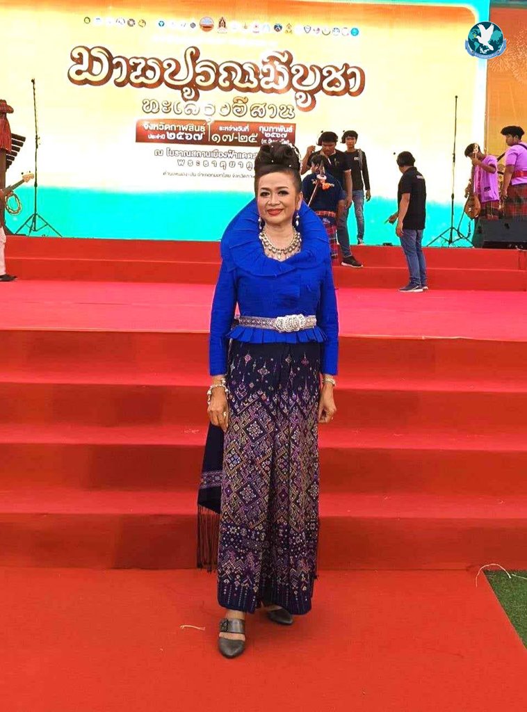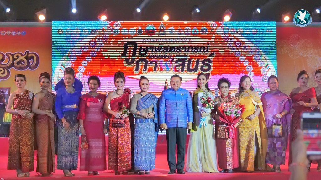 สมาคมส่งเสริมผ้าไทยจังหวัดกาฬสินธุ์ ร่วมกับมหาวิทยาลัยกาฬสินธุ์ ร่วมการแสดงแบบผ้าไทย ภูษาพัสตราภรณ์ออนซอนกาฬสินธุ์ ในงานประเพณี “มาฆปูรณมีบูชา” ทะเลธุงอีสาน เมืองน้ำดำ ประจำปี 2567