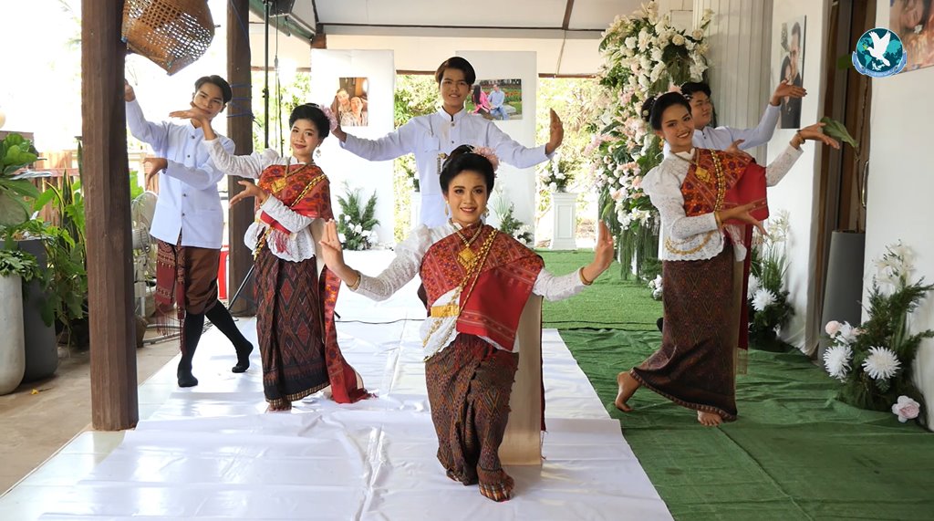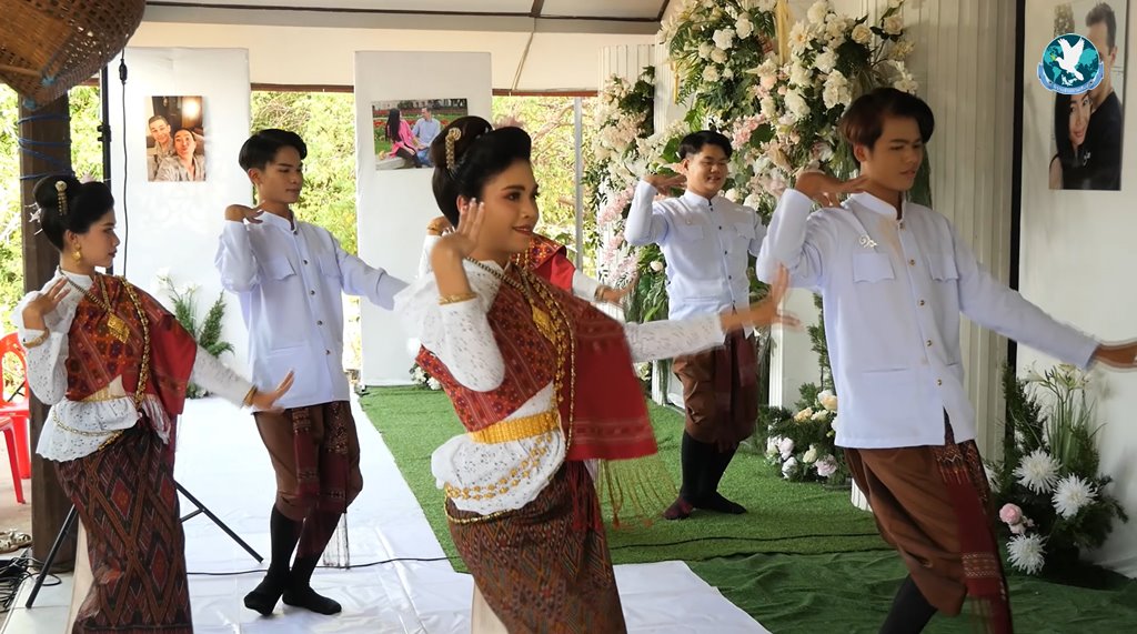 หลังพิธีสู่ขวัญและผูกแขนเจ้าบ่าวเจ้าสาวเสร็จแล้ว คณะนางรำที่มาทำการแสดง เตรียมการแสดงมาให้แขกที่เข้าร่วมพิธีมงคลสมรสได้ชมกันถึง 2 ชุดการแสดง จนทำให้เจ้าบ่าวและเจ้าสาวอดใจไม่ไหว ต้องออกจากห้องมาใส่รองเท้าร่วมฟ้อนรำร่วมกับนางรำอย่างสนุกสนาน โดยลีลาการฟ้อนรำของตัวเจ้าบ่าวชาวออสเตรียดูแล้วก็ไม่เบา ถึงจะไม่อ่อนช้อยเหมือนนางรำแต่ก็ยังฟ้อนเข้าจังหวะเพลง จนได้รับเสียงปรบมือจากแขกผู้เข้าร่วมงานจำนวนมาก