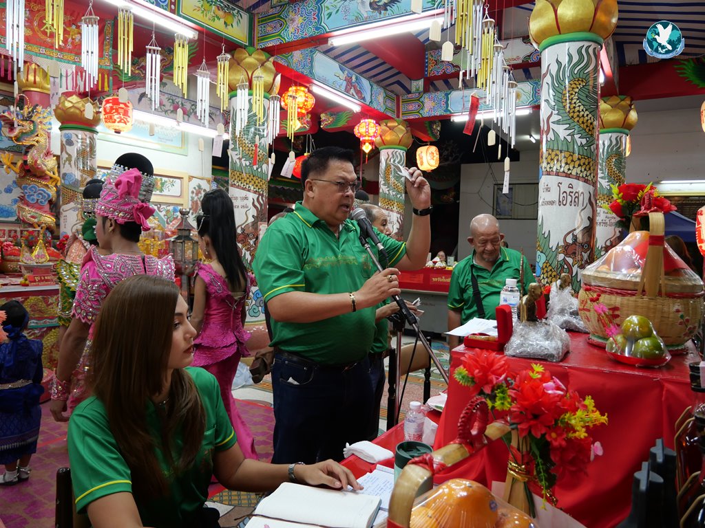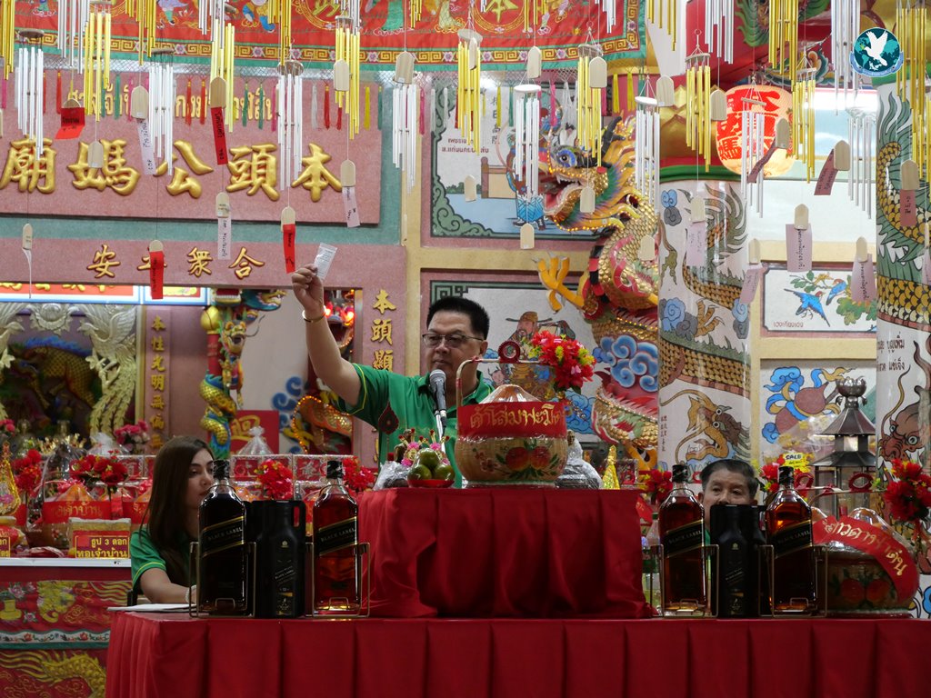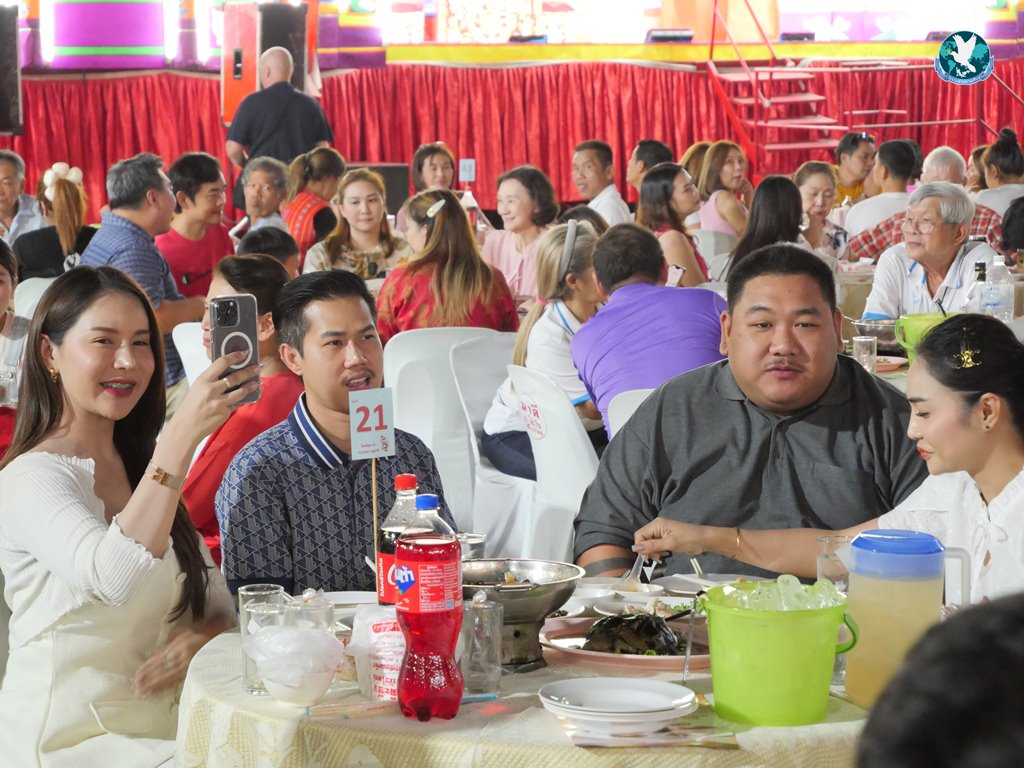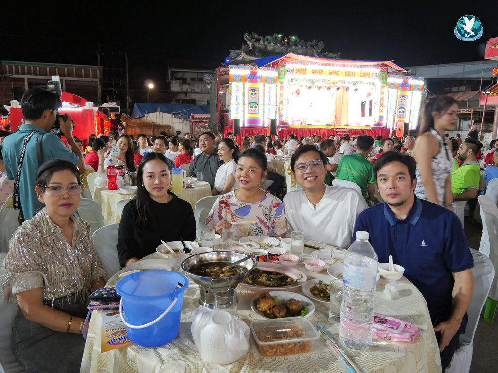 โดยคืนวันที่ 23 – 24 พ.ย. 2567 ภายในงานงิ้วได้จัดงานเลี้ยงโต๊ะจีน เพื่อเปิดประมูลของเซ่นไหว้ ให้คนไทยเชื้อสายจีนนำกลับไปเป็นมงคลให้ครอบครัว ธุรกิจ เกิดความเจริญรุ่งเรือง ค้าขายร่ำรวยๆ เฮงๆ มีกลุ่มพ่อค้า นักธุรกิจ ใส่เสื้อโทนสีแดงเข้าร่วมงานอย่างเนืองแน่น และที่ขาดไม่ได้ในงานก็จะมีโต๊ะจีน ที่คัดสรรเอาร้านที่มีชื่อเสียงที่นำมาเสริฟให้แขกผู้เข้าร่วมงานได้รับประทานไประหว่างทำการเปิดประมูลไปด้วย โดยเงินที่ประมูลได้จะนำไปบริหารในสมาคมฯ และนำไปบริจาคช่วยเหลือผู้ยากไร้ตามโอกาสต่าง ๆ ต่อไป