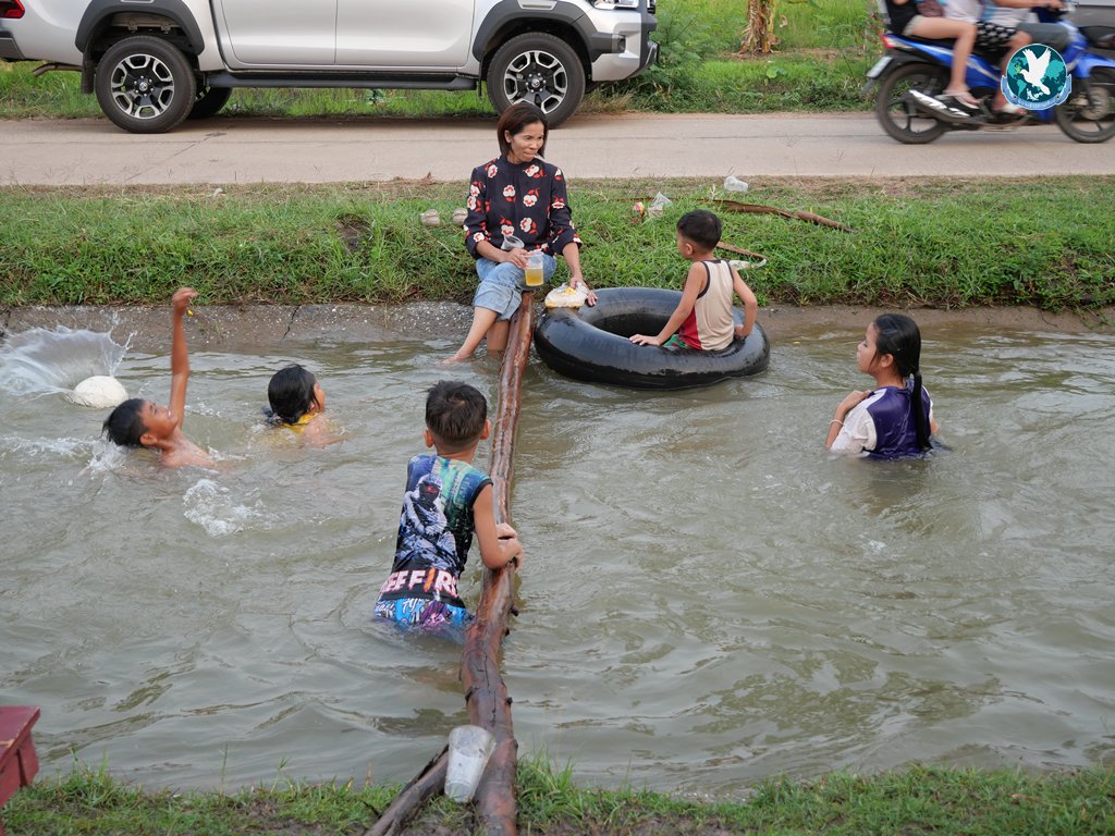 กาฬสินธุ์ คนกาฬสินธุ์หนีร้อน 37 องศา ตีลังกาเล่นน้ำคลอง