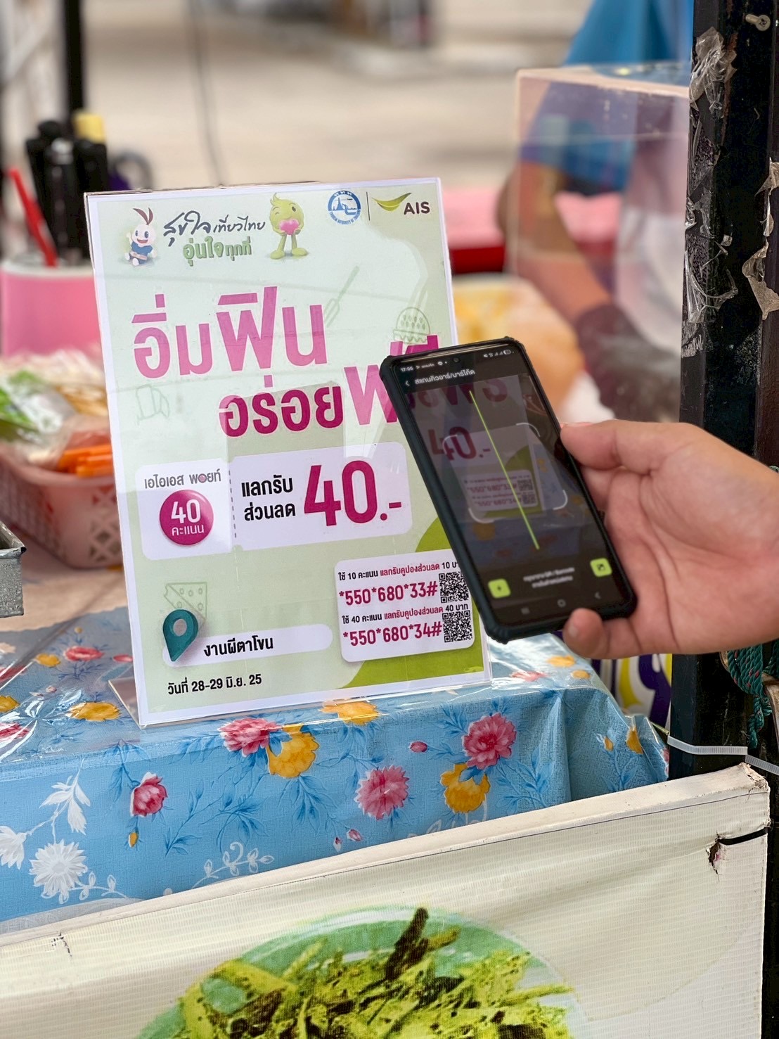 นอกจากนี้ เพื่อสร้างความพิเศษให้กับลูกค้า AIS และช่วยกระตุ้นการจับจ่ายและสร้างรายได้ให้กับผู้ประกอบการท้องถิ่น AIS ยังมอบสิทธิพิเศษ ผ่านแคมเปญ “อิ่มฟิน อร่อยฟรี” ที่ให้ลูกค้าใช้ AIS Points เพียง 40 คะแนนเพื่อรับส่วนลดความอร่อย 40 บาท จากร้านอาหารและเครื่องดื่มที่ร่วมโครงการ ผ่านแอป myAIS หรือสอบถามเพิ่มเติมได้ที่จุดบริการ AIS ภายในงานประเพณีบุญหลวงและการละเล่นผีตาโขน ประจำปี 2568 ตั้งแต่วันที่ 28-29 มิถุนายน 2568 ณ บริเวณหน้าที่ว่าการอำเภอด่านซ้าย (ศูนย์ขายสินค้า OTOP ) อำเภอด่านซ้าย จังหวัดเลย