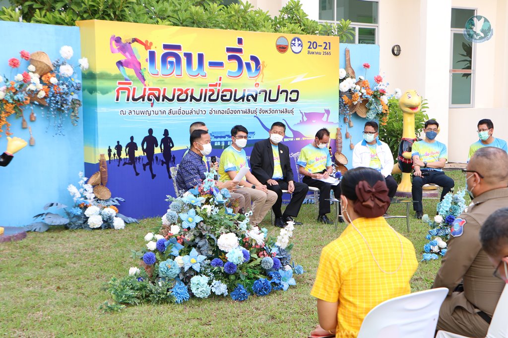 จังหวัดกาฬสินธุ์ ร่วมกับ สำนักงานท่องเที่ยวและกีฬาจังหวัดกาฬสินธุ์ และภาคีเครือข่ายทั้งภาครัฐและเอกชน จัดแถลงข่าวกิจกรรม เดิน – วิ่ง กินลมชมเขื่อนลำปาว ครั้งที่ 2 ระหว่างวันที่ 20-21 สิงหาคม 2565 เพื่อส่งเสริมให้ประชาชนออกกำลังกาย วิ่งชิว ๆ ระยะทาง 6 ก.ม. ส่งเสริมการท่องเที่ยว กระตุ้นเศรษฐกิจ ร่วม ชิม ช็อป ใช้ ของดีเมืองกาฬสินธุ์ งานมหกรรมอาหารสะอาด รสชาติอร่อย เน้นคนรักสุขภาพและชอบถ่ายภาพเช็คอินบนจุดชมวิวบนสันเขื่อนลำปาว จ.กาฬสินธุ์