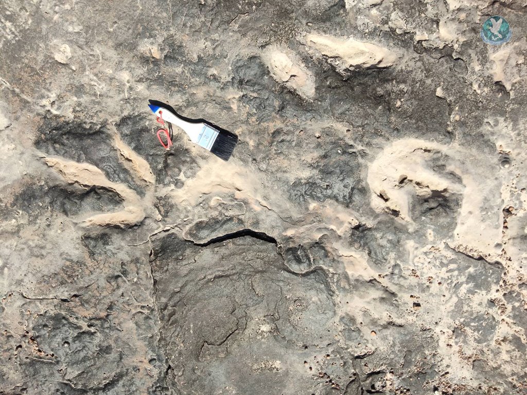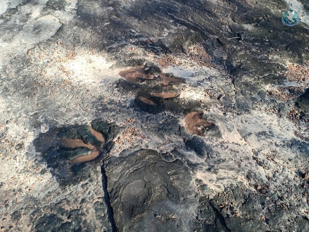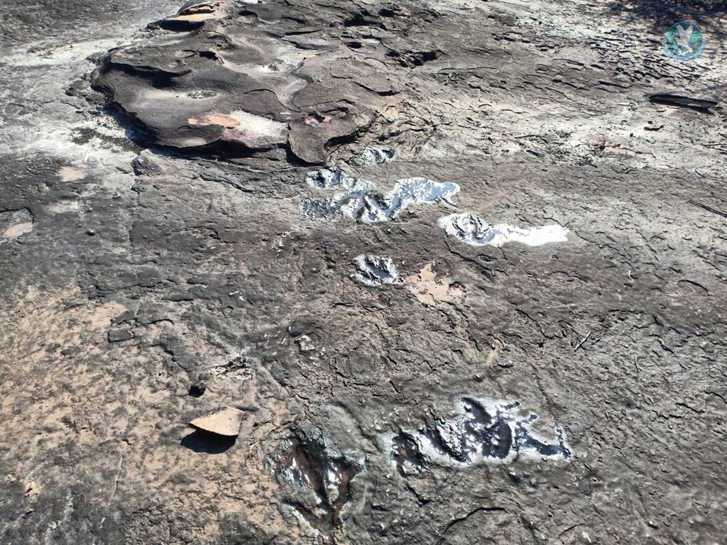 เบื้องต้น จากการสำรวจพื้นที่บริเวณดังกล่าว ลักษณะเป็นลานหินขนาดใหญ่ พบรอยตีนไดโนเสาร์มากกว่า 10 รอย กระจายตัวอยู่บนลานหินทราย หมวดหินพระวิหาร ซึ่งมีอายุประมาณ 140 ล้านปี โดยรอยตีนไดโนเสาร์ที่พบ มีความยาวประมาณ 21-30 เซนติเมตร และกว้าง 17-31 เซนติเมตร คาดว่าน่าจะเป็นรอยตีนของไดโนเสาร์กินเนื้อขนาดเล็ก สูงประมาณ 2 เมตร และยาวประมาณ 5 เมตร “ถือเป็นการค้นพบรอยตีนไดโนเสาร์แห่งใหม่ของประเทศไทย”