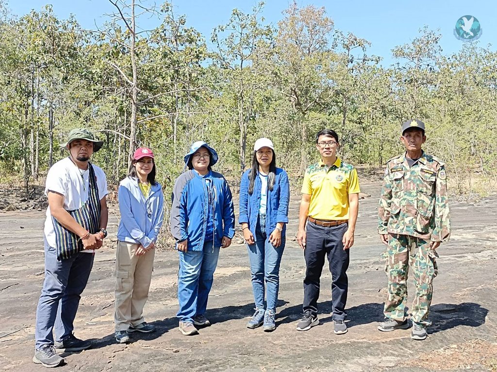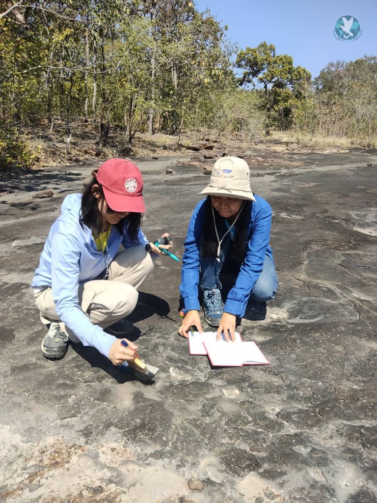 เจ้าหน้าที่พิพิธภัณฑ์สิรินธร สำนักงานทรัพยากรธรณี เขต 2 พร้อมด้วย นายดำรงศักดิ์ ชูศรีทอง หัวหน้าวนอุทยานภูแฝกเข้าตรวจสอบบริเวณบ๋าชาด ในพื้นที่ วนอุทยานภูแฝก ตำบลภูแลนช้าง อำเภอนาคู จังหวัดกาฬสินธุ์ ที่มีการแจ้งพบร่องรอยที่คาดว่าเป็นรอยตีนไดโนเสาร์ จากนายทองดี สุปิรัยทร ชาวบ้านน้ำคำ หมู่ 6 ตำบลภูแล่นช้าง อำเภอนาคู จังหวัดกาฬสินธุ์